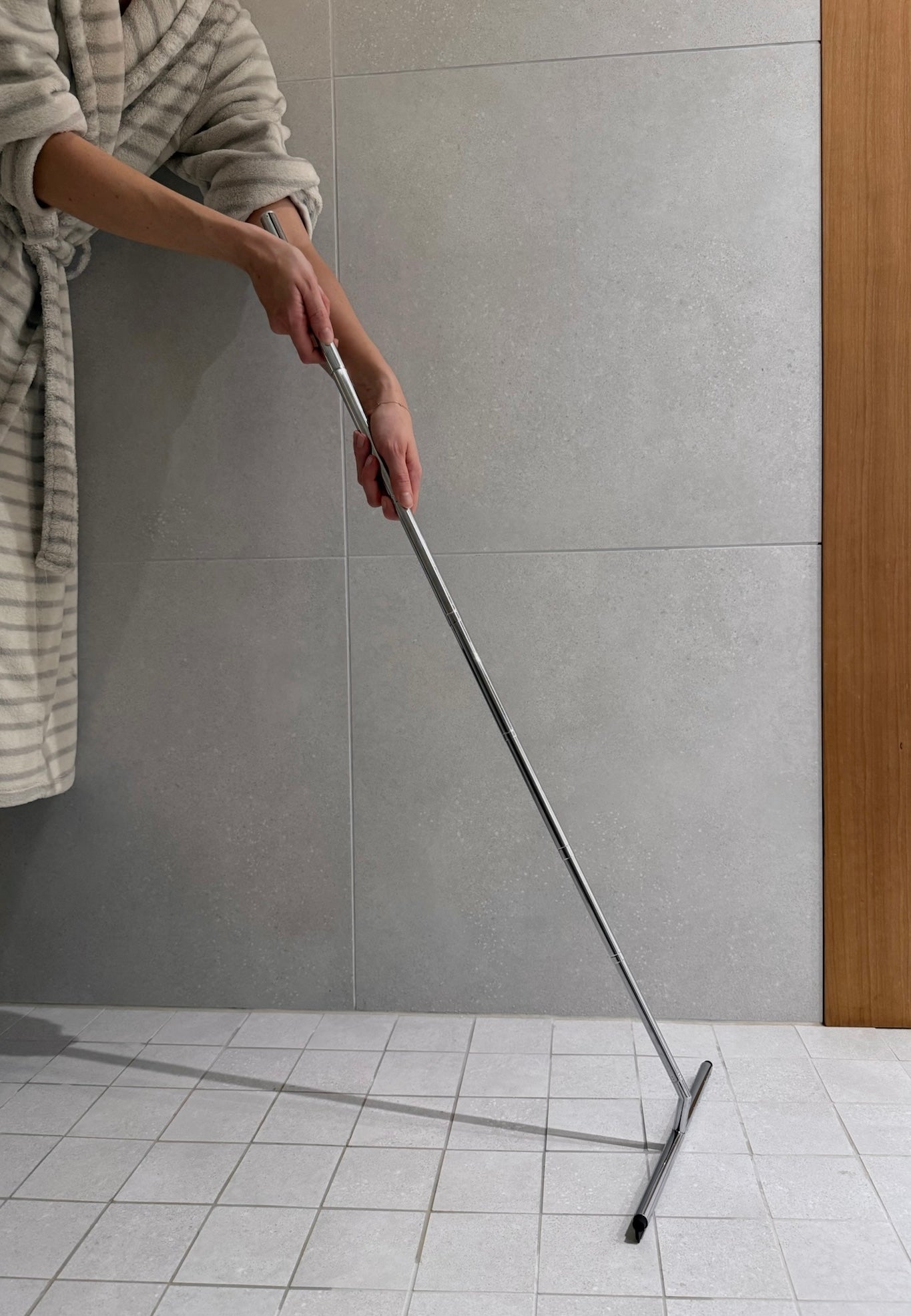 Sa poignée extensible permet de nettoyer les sols facilement sans se baisser, tandis que sa lame en silicone anti-traces laisse les miroirs et les vitres impeccables. Fabriquée en acier inoxydable, elle est conçue pour durer et arbore un design élégant et moderne. Sa lame amovible prolonge sa durée de vie et son crochet mural autocollant assure un rangement facile et pratique.